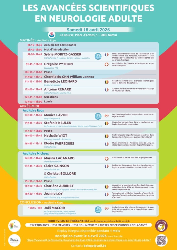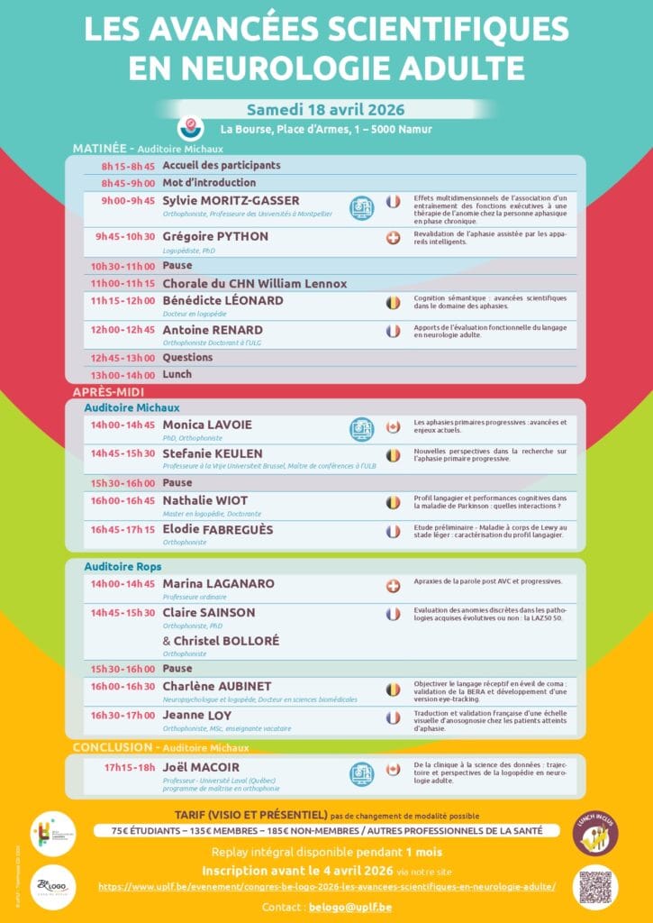 Le congrès Be LOGO, organisé par l’Union Professionnelle des Logopèdes Francophones (UPLF), est un événement scientifique annuel. Chaque année, un nouveau thème est mis en avant en lien avec les avancées de la recherche et de la pratique clinique en logopédie.